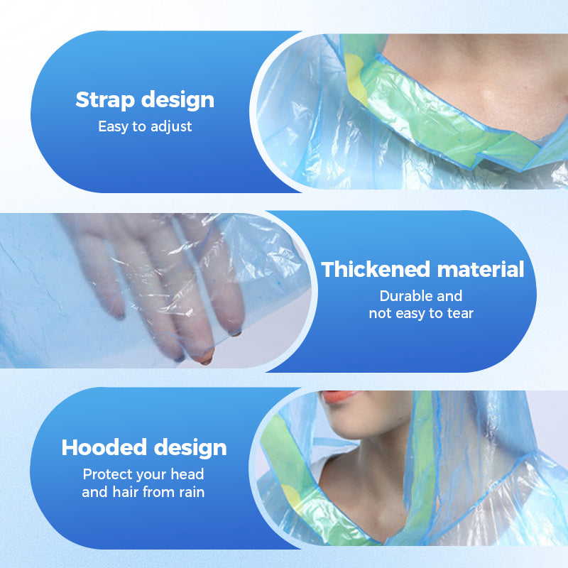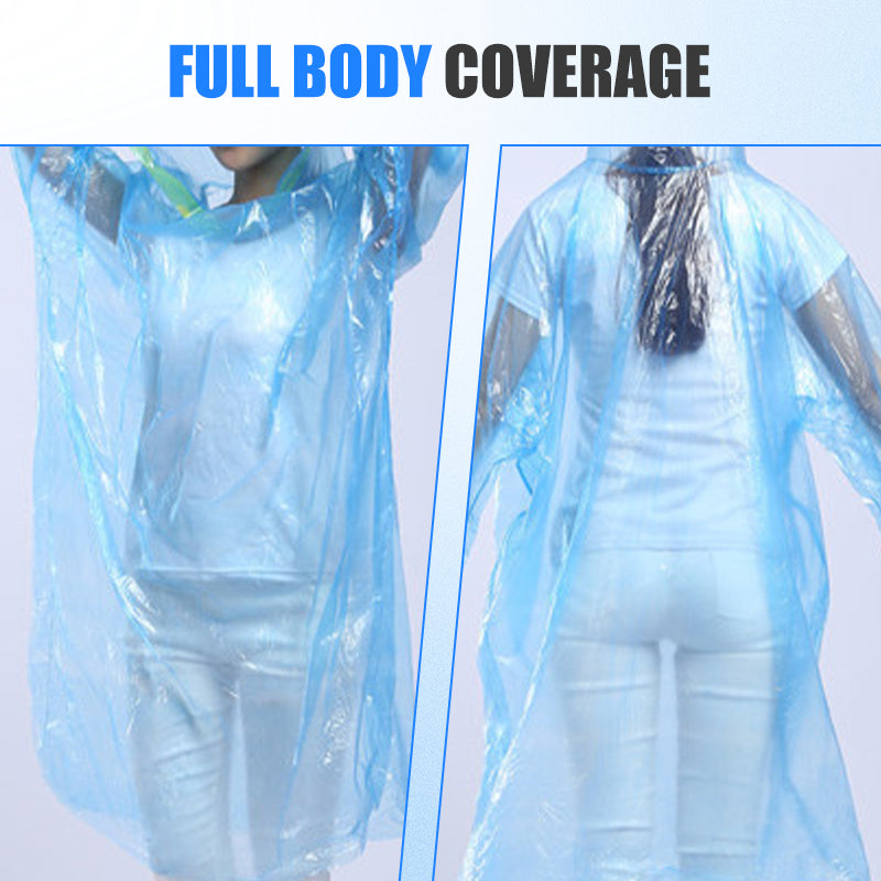 FACILE À UTILISER ET À JETER - Il suffit d'ouvrir, de déplier et d'enfiler. Ces ponchos à usage unique éliminent les problèmes de nettoyage et sont idéaux dans les situations où le matériel réutilisable n'est pas pratique ou hygiénique.