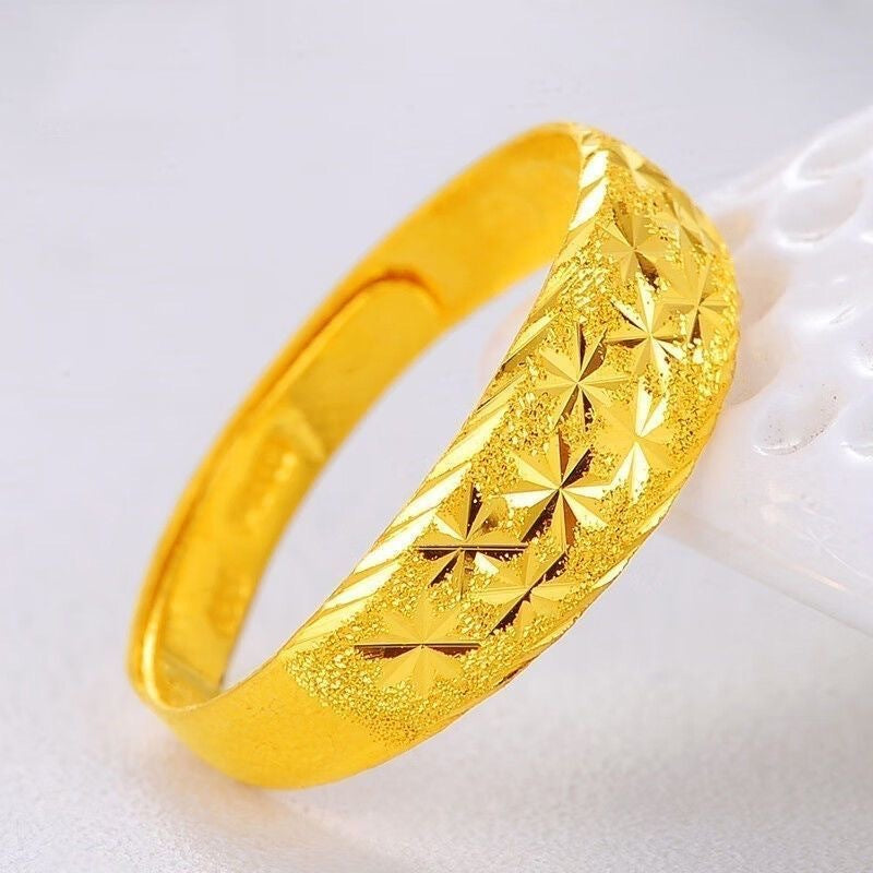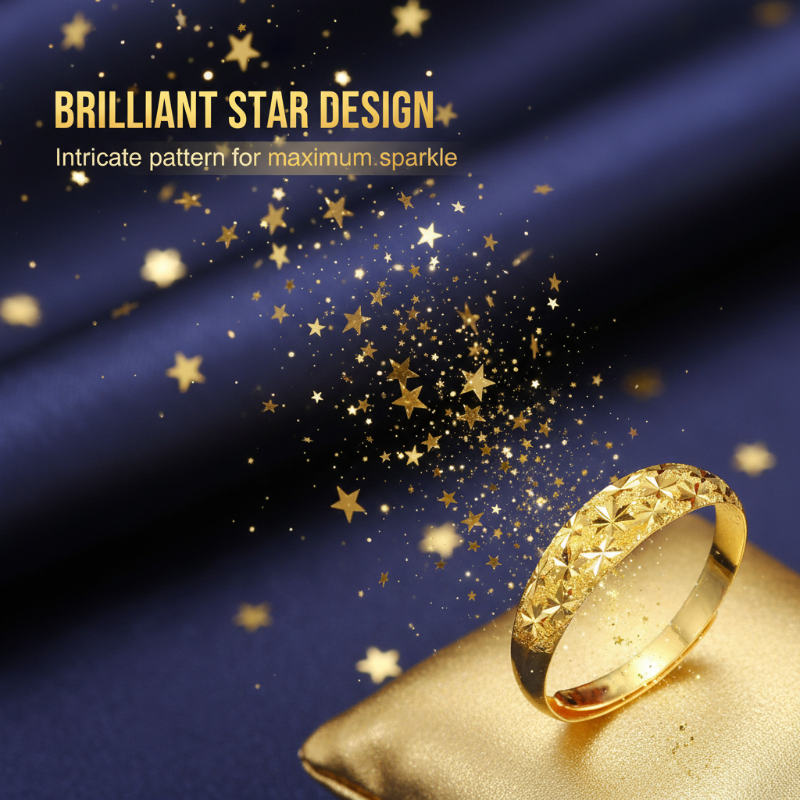 UNE ÉTOILE QUI NE S'ÉTEINT JAMAIS - Délicatement gravé d'un motif étoilé fascinant, cet anneau capte et reflète la lumière à chaque mouvement élégant. Son éclat subtil évoque le ciel nocturne, rappelant à l'infini que la beauté rayonne véritablement de l'intérieur.