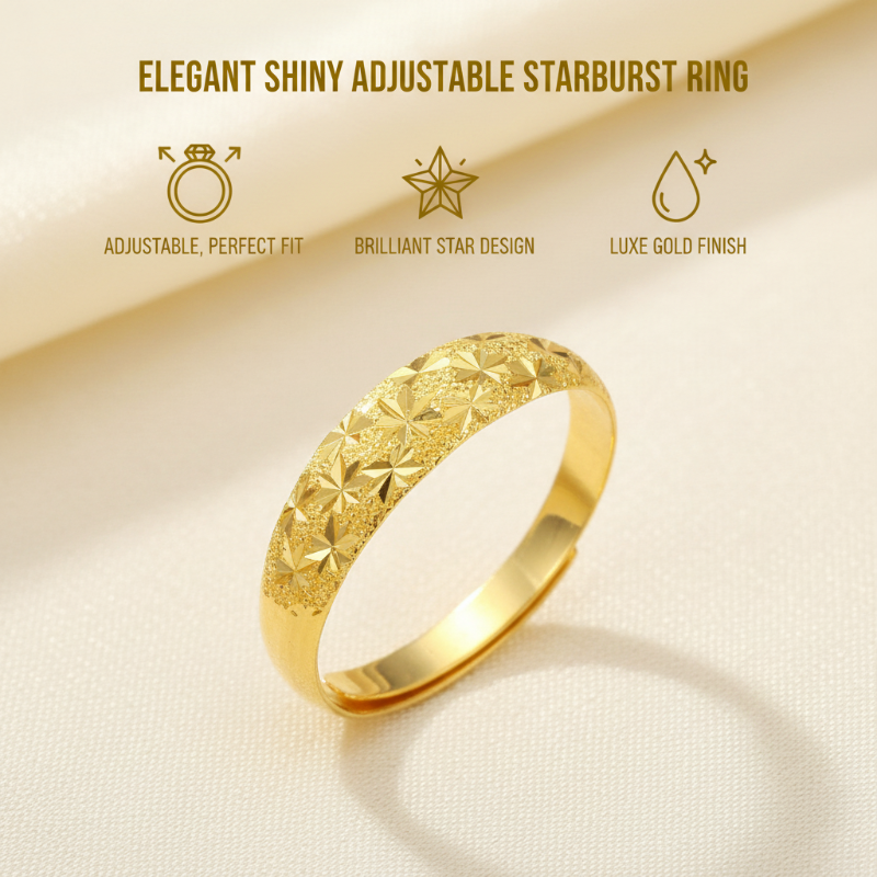 Élégante bague ajustable brillante dorée avec motif étoil